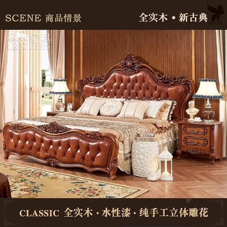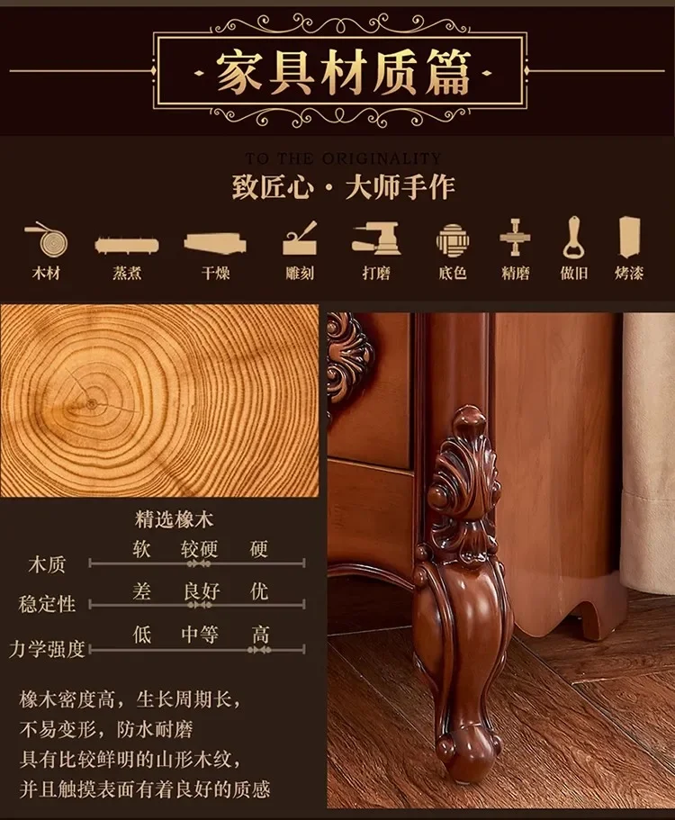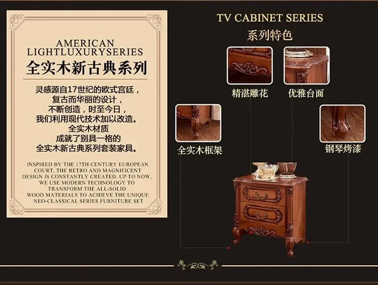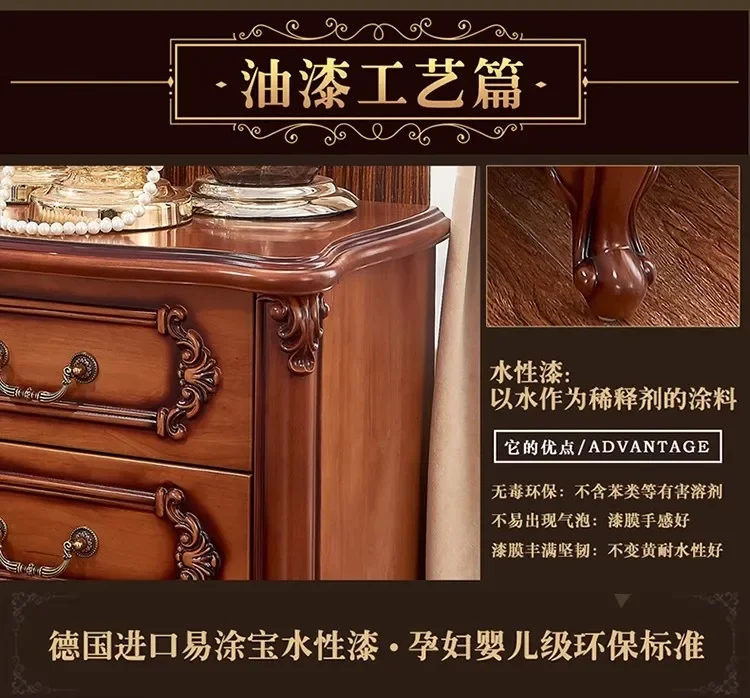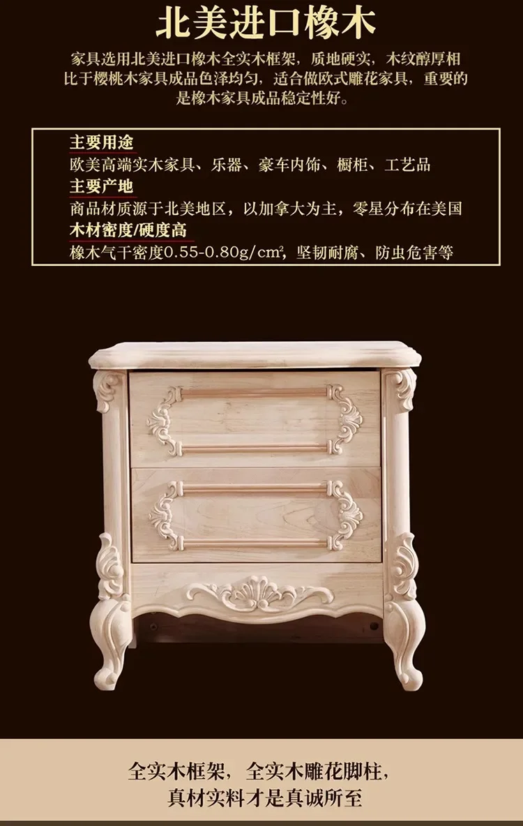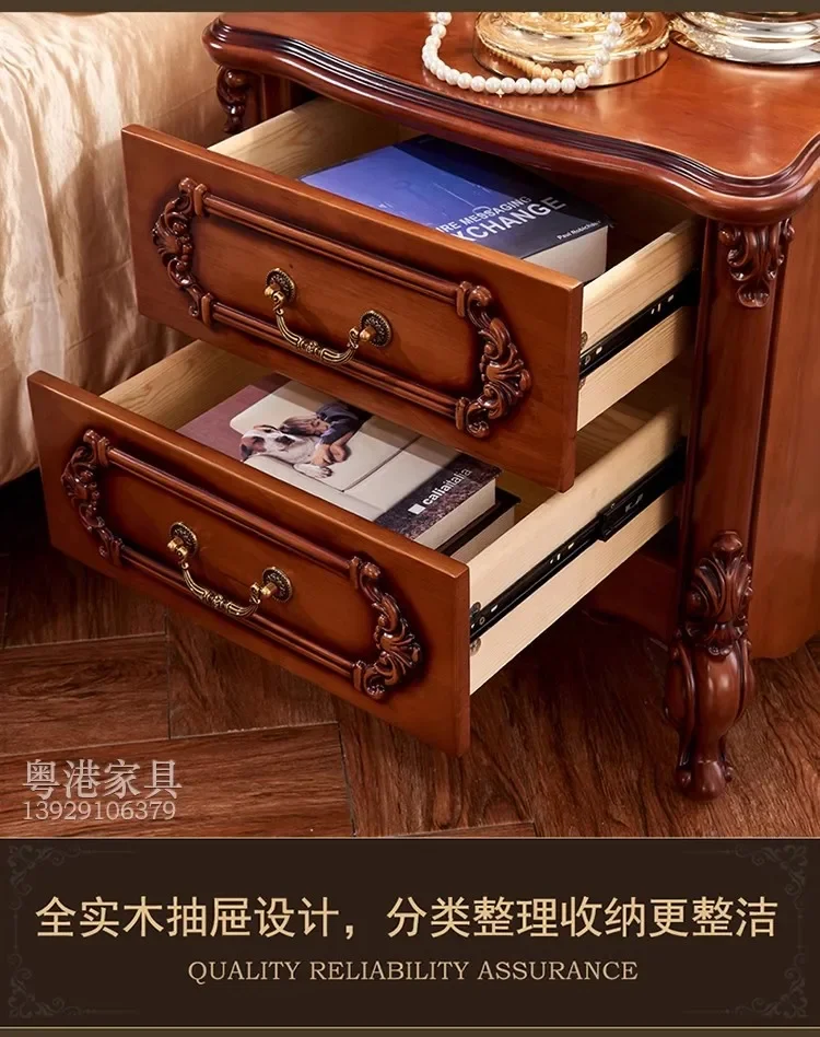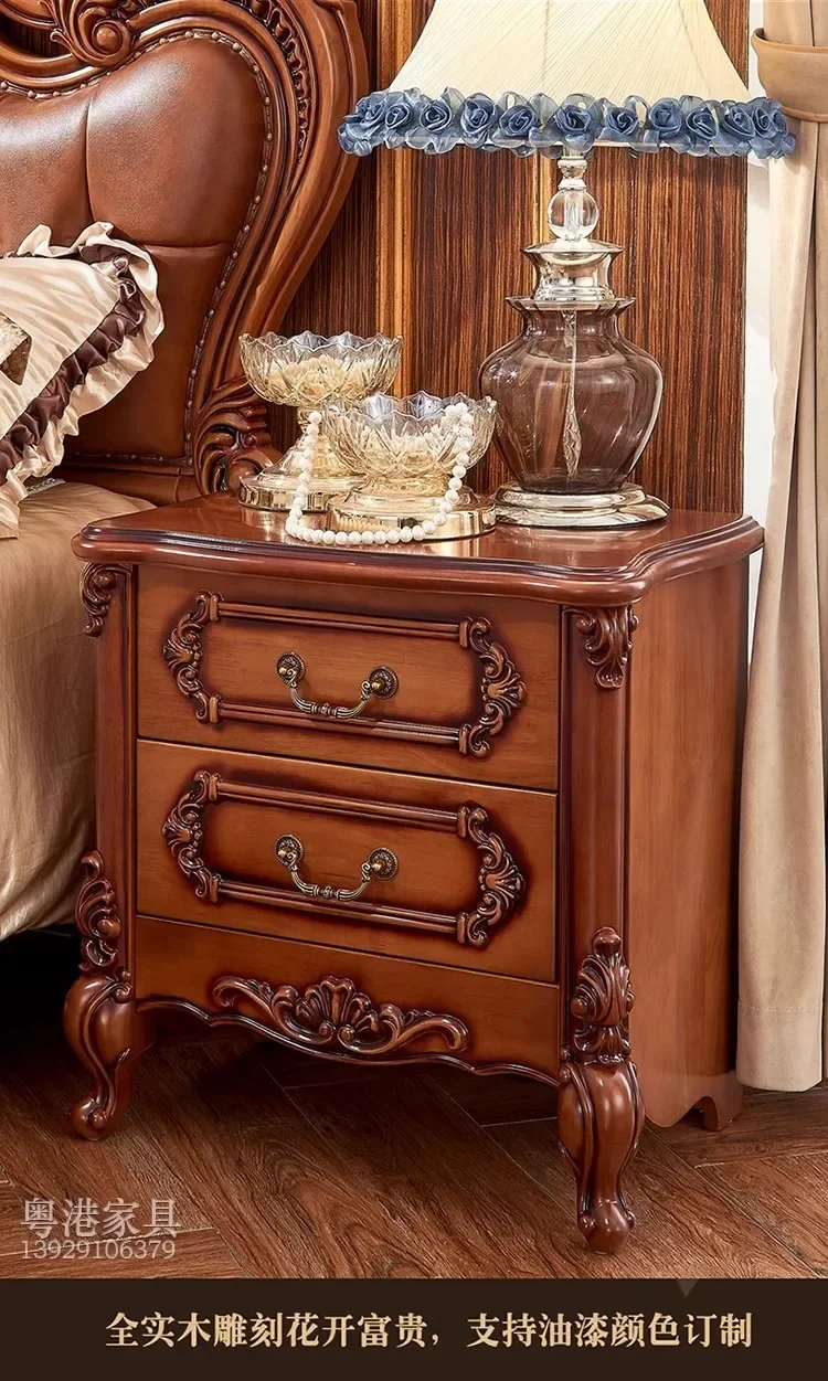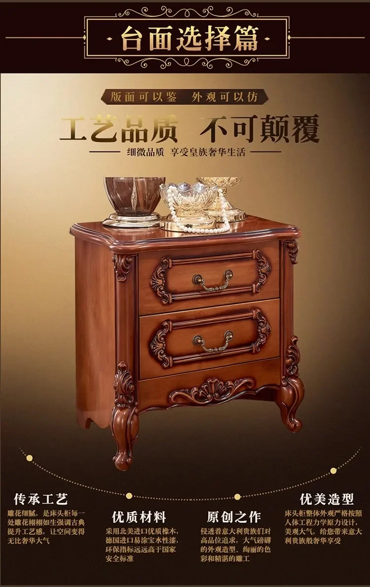 56European bedside table, American solid wood retro bedside table, bedroom storage with drawer engraving