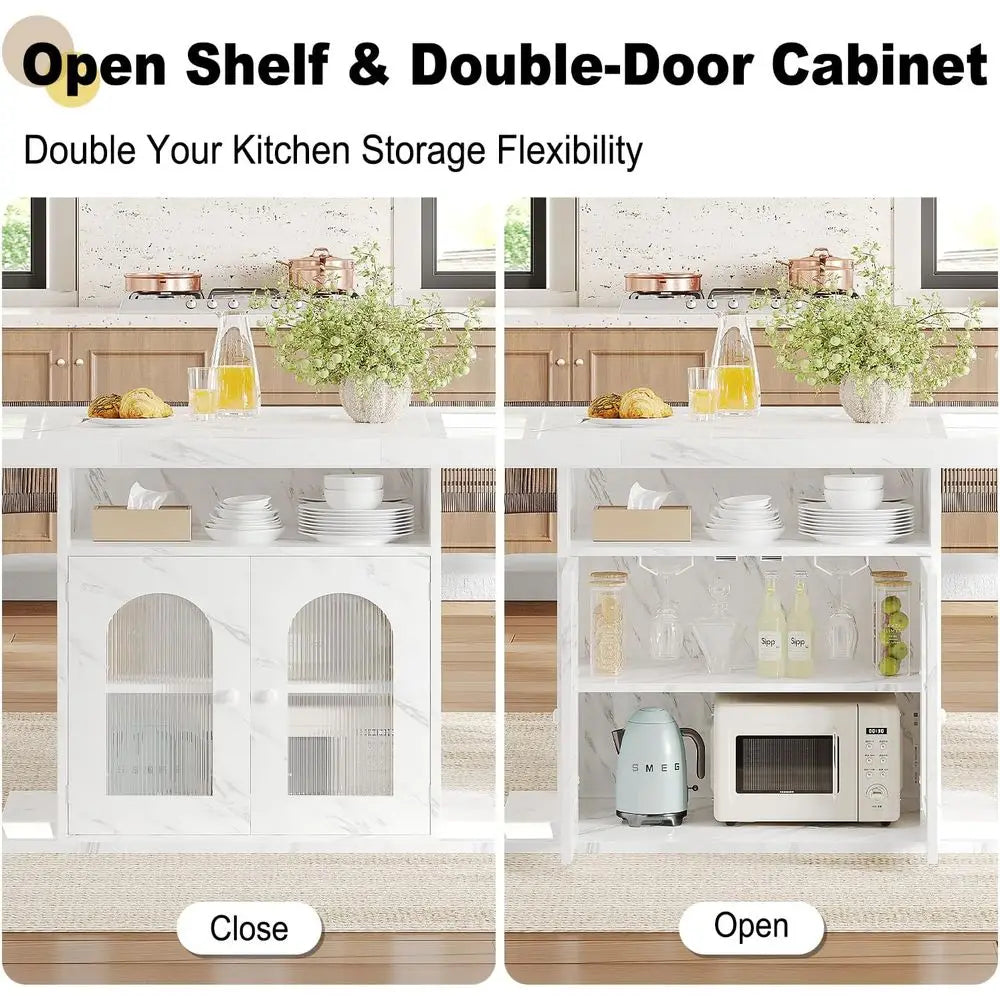 - Smart storage system: open shelf (22.44 × 14.57 × 5.9) for your daily essentials, plus a lower cabinet with double arched acrylic doors and two adjustable shelves with three height options.